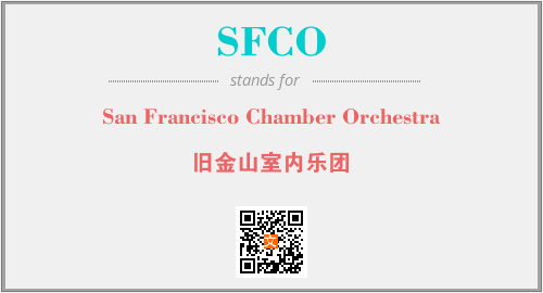 英文缩略词“SFCO”经常作为“San Francisco Chamber Orchestra”的英文缩写来使用,中文表示:“旧金山室内乐团”。本文将详细介绍英文缩写词SFCO所代表英文单词,其对应的中文拼音、详细解释以及在英语中的流行度。此外,还有关于缩略词SFCO的分类、应用领域及相关应用示例等。