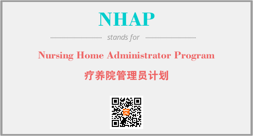 英文缩略词“NHAP”经常作为“Nursing Home Administrator Program”的英文缩写来使用,中文表示:“疗养院管理员计划”。本文将详细介绍英文缩写词NHAP所代表英文单词,其对应的中文拼音、详细解释以及在英语中的流行度。此外,还有关于缩略词NHAP的分类、应用领域及相关应用示例等。