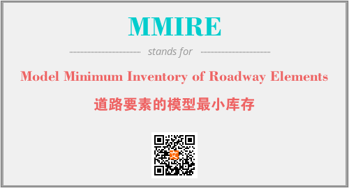 上述内容是“Model Minimum Inventory of Roadway Elements”作为“MMIRE”的缩写,解释为“道路要素的模型最小库存”时的信息,以及英文缩略词MMIRE所代表的英文单词,其对应的中文拼音、详细解释以及在英文中的流行度和相关分类、应用领域及应用示例等。