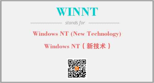 英文缩略词“WINNT”经常作为“Windows NT (New Technology)”的英文缩写来使用,中文表示:“Windows NT(新技术)”。本文将详细介绍英文缩写词WINNT所代表英文单词,其对应的中文拼音、详细解释以及在英语中的流行度。此外,还有关于缩略词WINNT的分类、应用领域及相关应用示例等。