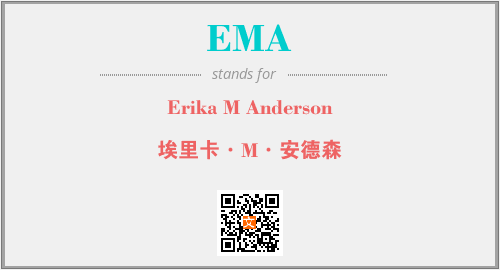 上述内容是“Erika M Anderson”作为“EMA”的缩写,解释为“埃里卡·M·安德森”时的信息,以及英文缩略词EMA所代表的英文单词,其对应的中文拼音、详细解释以及在英文中的流行度和相关分类、应用领域及应用示例等。