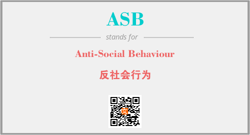 英文缩略词“ASB”经常作为“Anti-Social Behaviour”的英文缩写来使用,中文表示:“反社会行为”。本文将详细介绍英文缩写词ASB所代表英文单词,其对应的中文拼音、详细解释以及在英语中的流行度。此外,还有关于缩略词ASB的分类、应用领域及相关应用示例等。