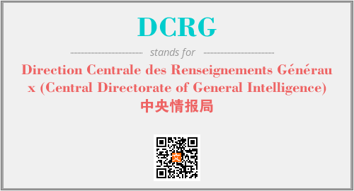 上述内容是“Direction Centrale des Renseignements Généraux (Central Directorate of General Intelligence)”作为“DCRG”的缩写,解释为“中央情报局”时的信息,以及英文缩略词DCRG所代表的英文单词,其对应的中文拼音、详细解释以及在英文中的流行度和相关分类、应用领域及应用示例等。