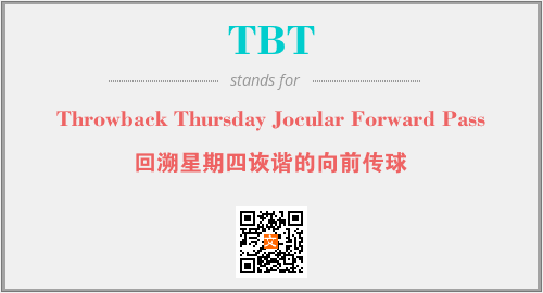 上述内容是“Throwback Thursday Jocular Forward Pass”作为“TBT”的缩写,解释为“回溯星期四诙谐的向前传球”时的信息,以及英文缩略词TBT所代表的英文单词,其对应的中文拼音、详细解释以及在英文中的流行度和相关分类、应用领域及应用示例等。