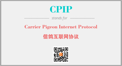 英文缩略词“CPIP”经常作为“Carrier Pigeon Internet Protocol”的英文缩写来使用,中文表示:“信鸽互联网协议”。本文将详细介绍英文缩写词CPIP所代表英文单词,其对应的中文拼音、详细解释以及在英语中的流行度。此外,还有关于缩略词CPIP的分类、应用领域及相关应用示例等。