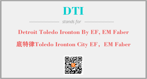 上述内容是“Detroit Toledo Ironton By EF, EM Faber”作为“DTI”的缩写,解释为“底特律Toledo Ironton City EF,EM Faber”时的信息,以及英文缩略词DTI所代表的英文单词,其对应的中文拼音、详细解释以及在英文中的流行度和相关分类、应用领域及应用示例等。