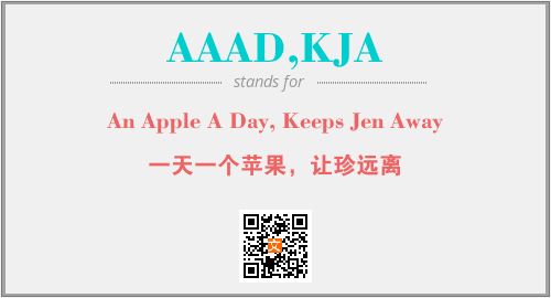 以上为An Apple A Day, Keeps Jen Away英文缩略词AAAD,KJA的中文解释,以及该英文缩写在英语的流行度、分类和应用领域方面的信息。