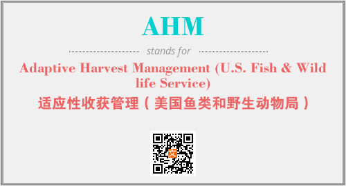 英文缩略词“AHM”经常作为“Adaptive Harvest Management (U.S. Fish & Wildlife Service)”的英文缩写来使用,中文表示:“适应性收获管理(美国鱼类和野生动物局)”。本文将详细介绍英文缩写词AHM所代表英文单词,其对应的中文拼音、详细解释以及在英语中的流行度。此外,还有关于缩略词AHM的分类、应用领域及相关应用示例等。