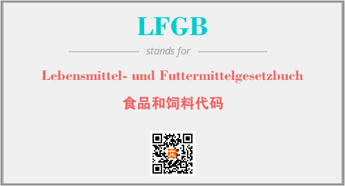 上述内容是“Lebensmittel- und Futtermittelgesetzbuch”作为“LFGB”的缩写,解释为“食品和饲料代码”时的信息,以及英文缩略词LFGB所代表的英文单词,其对应的中文拼音、详细解释以及在英文中的流行度和相关分类、应用领域及应用示例等。