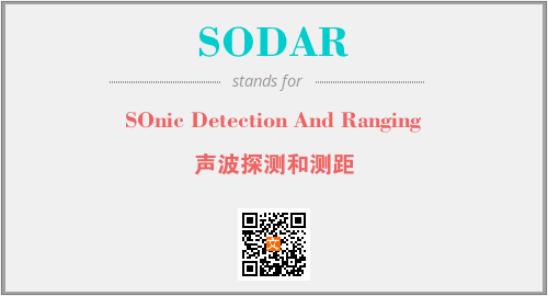 上述内容是“SOnic Detection And Ranging”作为“SODAR”的缩写,解释为“声波探测和测距”时的信息,以及英文缩略词SODAR所代表的英文单词,其对应的中文拼音、详细解释以及在英文中的流行度和相关分类、应用领域及应用示例等。