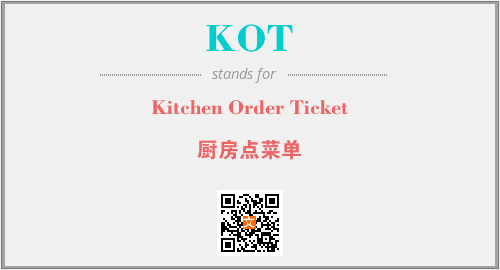 英文缩略词“KOT”经常作为“Kitchen Order Ticket”的英文缩写来使用,中文表示:“厨房点菜单”。本文将详细介绍英文缩写词KOT所代表英文单词,其对应的中文拼音、详细解释以及在英语中的流行度。此外,还有关于缩略词KOT的分类、应用领域及相关应用示例等。