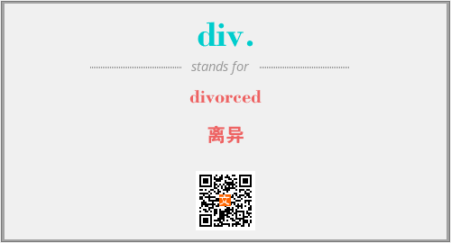英文缩略词“div.”经常作为“divorced”的英文缩写来使用,中文表示:“离异”。本文将详细介绍英文缩写词div.所代表英文单词,其对应的中文拼音、详细解释以及在英语中的流行度。此外,还有关于缩略词div.的分类、应用领域及相关应用示例等。