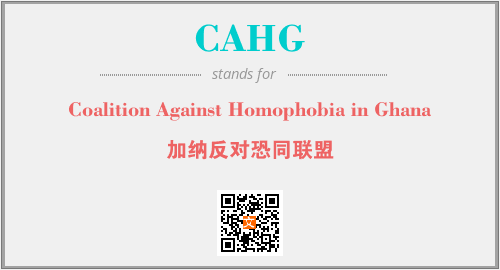 英文缩略词“CAHG”经常作为“Coalition Against Homophobia in Ghana”的英文缩写来使用,中文表示:“加纳反对恐同联盟”。本文将详细介绍英文缩写词CAHG所代表英文单词,其对应的中文拼音、详细解释以及在英语中的流行度。此外,还有关于缩略词CAHG的分类、应用领域及相关应用示例等。