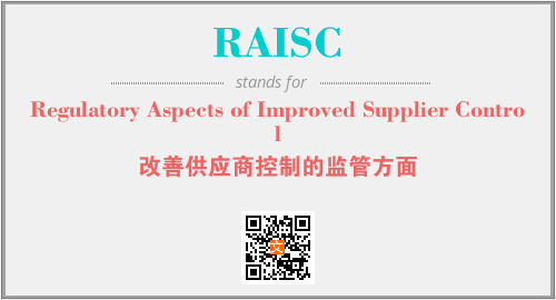 上述内容是“Regulatory Aspects of Improved Supplier Control”作为“RAISC”的缩写,解释为“改善供应商控制的监管方面”时的信息,以及英文缩略词RAISC所代表的英文单词,其对应的中文拼音、详细解释以及在英文中的流行度和相关分类、应用领域及应用示例等。