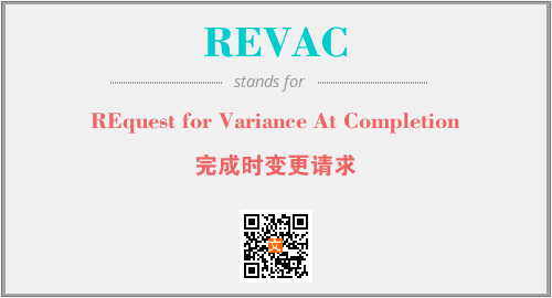 上述内容是“REquest for Variance At Completion”作为“REVAC”的缩写,解释为“完成时变更请求”时的信息,以及英文缩略词REVAC所代表的英文单词,其对应的中文拼音、详细解释以及在英文中的流行度和相关分类、应用领域及应用示例等。