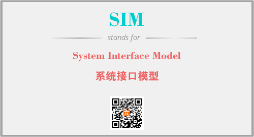 上述内容是“System Interface Model”作为“SIM”的缩写,解释为“系统接口模型”时的信息,以及英文缩略词SIM所代表的英文单词,其对应的中文拼音、详细解释以及在英文中的流行度和相关分类、应用领域及应用示例等。