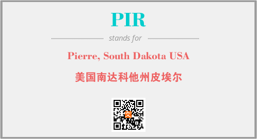 英文缩略词“PIR”经常作为“Pierre, South Dakota USA”的英文缩写来使用,中文表示:“美国南达科他州皮埃尔”。本文将详细介绍英文缩写词PIR所代表英文单词,其对应的中文拼音、详细解释以及在英语中的流行度。此外,还有关于缩略词PIR的分类、应用领域及相关应用示例等。