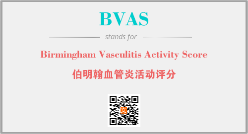上述内容是“Birmingham Vasculitis Activity Score”作为“BVAS”的缩写,解释为“伯明翰血管炎活动评分”时的信息,以及英文缩略词BVAS所代表的英文单词,其对应的中文拼音、详细解释以及在英文中的流行度和相关分类、应用领域及应用示例等。