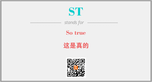 以上为So true英文缩略词ST的中文解释,以及该英文缩写在英语的流行度、分类和应用领域方面的信息。