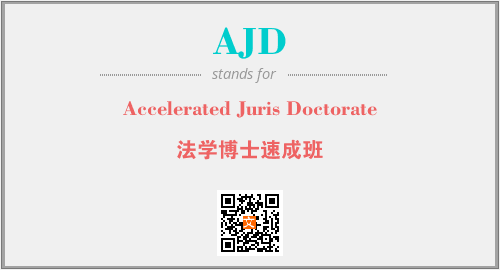 上述内容是“Accelerated Juris Doctorate”作为“AJD”的缩写,解释为“法学博士速成班”时的信息,以及英文缩略词AJD所代表的英文单词,其对应的中文拼音、详细解释以及在英文中的流行度和相关分类、应用领域及应用示例等。