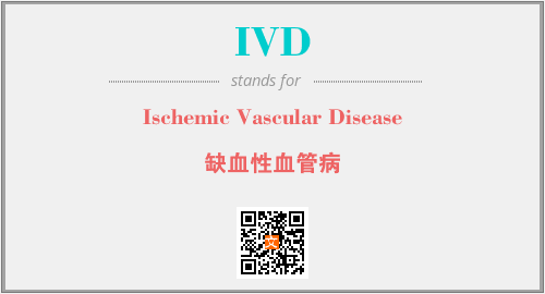英文缩略词“IVD”经常作为“Ischemic Vascular Disease”的英文缩写来使用,中文表示:“缺血性血管病”。本文将详细介绍英文缩写词IVD所代表英文单词,其对应的中文拼音、详细解释以及在英语中的流行度。此外,还有关于缩略词IVD的分类、应用领域及相关应用示例等。