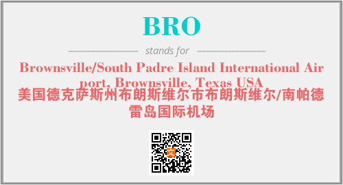 英文缩略词“BRO”经常作为“Brownsville/South Padre Island International Airport, Brownsville, Texas USA”的英文缩写来使用,中文表示:“美国德克萨斯州布朗斯维尔市布朗斯维尔/南帕德雷岛国际机场”。本文将详细介绍英文缩写词BRO所代表英文单词,其对应的中文拼音、详细解释以及在英语中的流行度。此外,还有关于缩略词BRO的分类、应用领域及相关应用示例等。