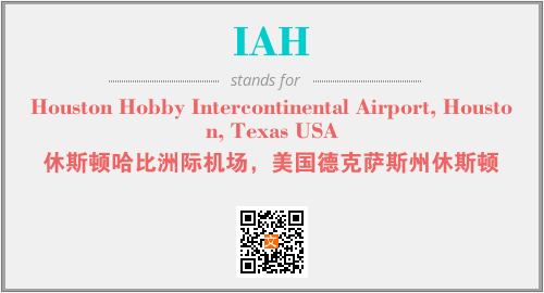 英文缩略词“IAH”经常作为“Houston Hobby Intercontinental Airport, Houston, Texas USA”的英文缩写来使用,中文表示:“休斯顿哈比洲际机场,美国德克萨斯州休斯顿”。本文将详细介绍英文缩写词IAH所代表英文单词,其对应的中文拼音、详细解释以及在英语中的流行度。此外,还有关于缩略词IAH的分类、应用领域及相关应用示例等。