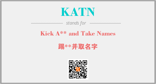 英文缩略词“KATN”经常作为“Kick A** and Take Names”的英文缩写来使用,中文表示:“踢**并取名字”。本文将详细介绍英文缩写词KATN所代表英文单词,其对应的中文拼音、详细解释以及在英语中的流行度。此外,还有关于缩略词KATN的分类、应用领域及相关应用示例等。