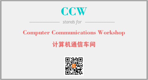 英文缩略词“CCW”经常作为“Computer Communications Workshop”的英文缩写来使用,中文表示:“计算机通信车间”。本文将详细介绍英文缩写词CCW所代表英文单词,其对应的中文拼音、详细解释以及在英语中的流行度。此外,还有关于缩略词CCW的分类、应用领域及相关应用示例等。