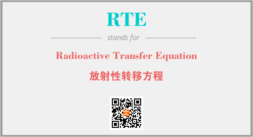 上述内容是“Radioactive Transfer Equation”作为“RTE”的缩写,解释为“放射性转移方程”时的信息,以及英文缩略词RTE所代表的英文单词,其对应的中文拼音、详细解释以及在英文中的流行度和相关分类、应用领域及应用示例等。