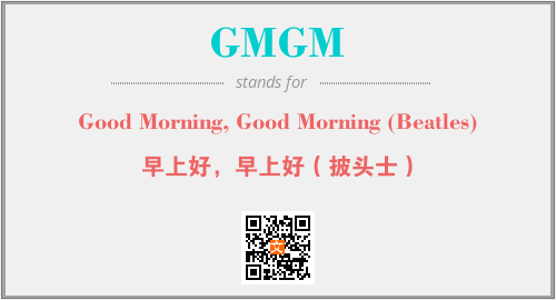 英文缩略词“GMGM”经常作为“Good Morning, Good Morning (Beatles)”的英文缩写来使用,中文表示:“早上好,早上好(披头士)”。本文将详细介绍英文缩写词GMGM所代表英文单词,其对应的中文拼音、详细解释以及在英语中的流行度。此外,还有关于缩略词GMGM的分类、应用领域及相关应用示例等。