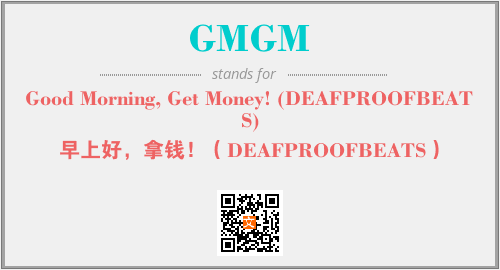 以上为Good Morning, Get Money! (DEAFPROOFBEATS)英文缩略词GMGM的中文解释,以及该英文缩写在英语的流行度、分类和应用领域方面的信息。