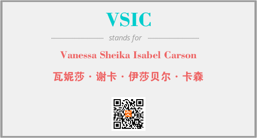 以上为Vanessa Sheika Isabel Carson英文缩略词VSIC的中文解释,以及该英文缩写在英语的流行度、分类和应用领域方面的信息。