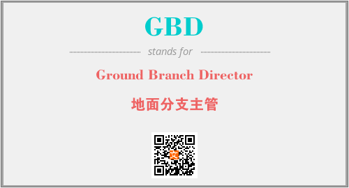 上述内容是“Ground Branch Director”作为“GBD”的缩写,解释为“地面分支主管”时的信息,以及英文缩略词GBD所代表的英文单词,其对应的中文拼音、详细解释以及在英文中的流行度和相关分类、应用领域及应用示例等。