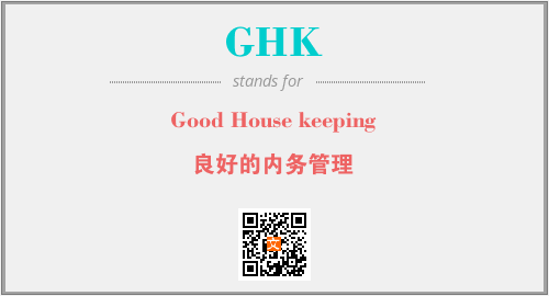 英文缩略词“GHK”经常作为“Good House keeping”的英文缩写来使用,中文表示:“良好的内务管理”。本文将详细介绍英文缩写词GHK所代表英文单词,其对应的中文拼音、详细解释以及在英语中的流行度。此外,还有关于缩略词GHK的分类、应用领域及相关应用示例等。