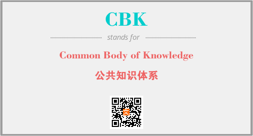 英文缩略词“CBK”经常作为“Common Body of Knowledge”的英文缩写来使用,中文表示:“公共知识体系”。本文将详细介绍英文缩写词CBK所代表英文单词,其对应的中文拼音、详细解释以及在英语中的流行度。此外,还有关于缩略词CBK的分类、应用领域及相关应用示例等。