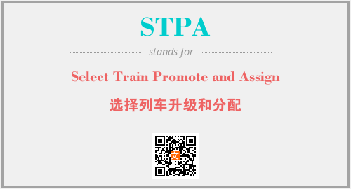 英文缩略词“STPA”经常作为“Select Train Promote and Assign”的英文缩写来使用,中文表示:“选择列车升级和分配”。本文将详细介绍英文缩写词STPA所代表英文单词,其对应的中文拼音、详细解释以及在英语中的流行度。此外,还有关于缩略词STPA的分类、应用领域及相关应用示例等。