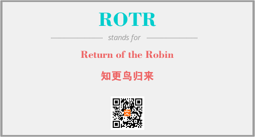 以上为Return of the Robin英文缩略词ROTR的中文解释,以及该英文缩写在英语的流行度、分类和应用领域方面的信息。