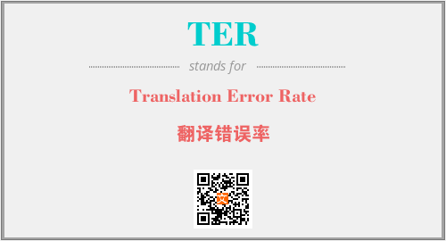 英文缩略词“TER”经常作为“Translation Error Rate”的英文缩写来使用,中文表示:“翻译错误率”。本文将详细介绍英文缩写词TER所代表英文单词,其对应的中文拼音、详细解释以及在英语中的流行度。此外,还有关于缩略词TER的分类、应用领域及相关应用示例等。