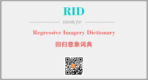 上述内容是“Regressive Imagery Dictionary”作为“RID”的缩写,解释为“回归意象词典”时的信息,以及英文缩略词RID所代表的英文单词,其对应的中文拼音、详细解释以及在英文中的流行度和相关分类、应用领域及应用示例等。