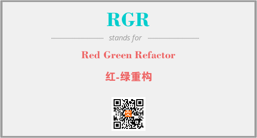 上述内容是“Red Green Refactor”作为“RGR”的缩写,解释为“红-绿重构”时的信息,以及英文缩略词RGR所代表的英文单词,其对应的中文拼音、详细解释以及在英文中的流行度和相关分类、应用领域及应用示例等。