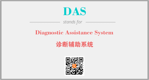 上述内容是“Diagnostic Assistance System”作为“DAS”的缩写,解释为“诊断辅助系统”时的信息,以及英文缩略词DAS所代表的英文单词,其对应的中文拼音、详细解释以及在英文中的流行度和相关分类、应用领域及应用示例等。