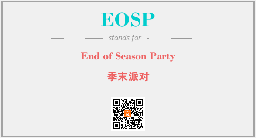 英文缩略词“EOSP”经常作为“End of Season Party”的英文缩写来使用,中文表示:“季末派对”。本文将详细介绍英文缩写词EOSP所代表英文单词,其对应的中文拼音、详细解释以及在英语中的流行度。此外,还有关于缩略词EOSP的分类、应用领域及相关应用示例等。