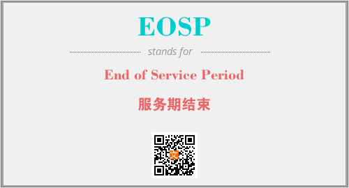 英文缩略词“EOSP”经常作为“End of Service Period”的英文缩写来使用,中文表示:“服务期结束”。本文将详细介绍英文缩写词EOSP所代表英文单词,其对应的中文拼音、详细解释以及在英语中的流行度。此外,还有关于缩略词EOSP的分类、应用领域及相关应用示例等。