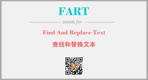 上述内容是“Find And Replace Text”作为“FART”的缩写,解释为“查找和替换文本”时的信息,以及英文缩略词FART所代表的英文单词,其对应的中文拼音、详细解释以及在英文中的流行度和相关分类、应用领域及应用示例等。