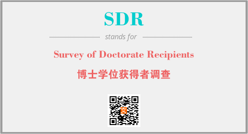 上述内容是“Survey of Doctorate Recipients”作为“SDR”的缩写,解释为“博士学位获得者调查”时的信息,以及英文缩略词SDR所代表的英文单词,其对应的中文拼音、详细解释以及在英文中的流行度和相关分类、应用领域及应用示例等。