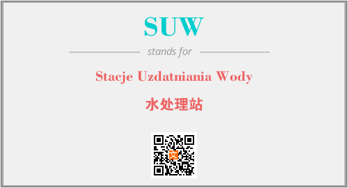 上述内容是“Stacje Uzdatniania Wody”作为“SUW”的缩写,解释为“水处理站”时的信息,以及英文缩略词SUW所代表的英文单词,其对应的中文拼音、详细解释以及在英文中的流行度和相关分类、应用领域及应用示例等。