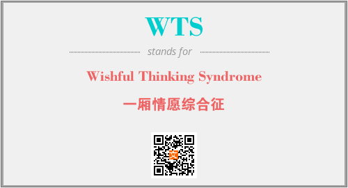 英文缩略词“WTS”经常作为“Wishful Thinking Syndrome”的英文缩写来使用,中文表示:“一厢情愿综合征”。本文将详细介绍英文缩写词WTS所代表英文单词,其对应的中文拼音、详细解释以及在英语中的流行度。此外,还有关于缩略词WTS的分类、应用领域及相关应用示例等。