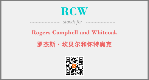 英文缩略词“RCW”经常作为“Rogers Campbell and Whiteoak”的英文缩写来使用,中文表示:“罗杰斯·坎贝尔和怀特奥克”。本文将详细介绍英文缩写词RCW所代表英文单词,其对应的中文拼音、详细解释以及在英语中的流行度。此外,还有关于缩略词RCW的分类、应用领域及相关应用示例等。