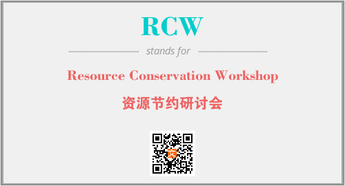 英文缩略词“RCW”经常作为“Resource Conservation Workshop”的英文缩写来使用,中文表示:“资源节约研讨会”。本文将详细介绍英文缩写词RCW所代表英文单词,其对应的中文拼音、详细解释以及在英语中的流行度。此外,还有关于缩略词RCW的分类、应用领域及相关应用示例等。